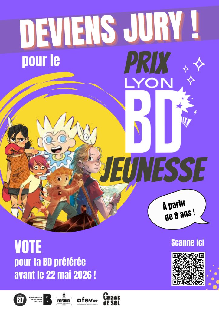 Pour la première fois, la Bibliothèque municipale de Lyon, les Ambassadeurs du Livre de l’Afev, la librairie Expérience, Grains de Sel et Lyon BD s’associent pour lancer un nouveau prix : le Prix Lyon BD Jeunesse ! Celui-ci récompensera la meilleure BD jeunesse de l’année.