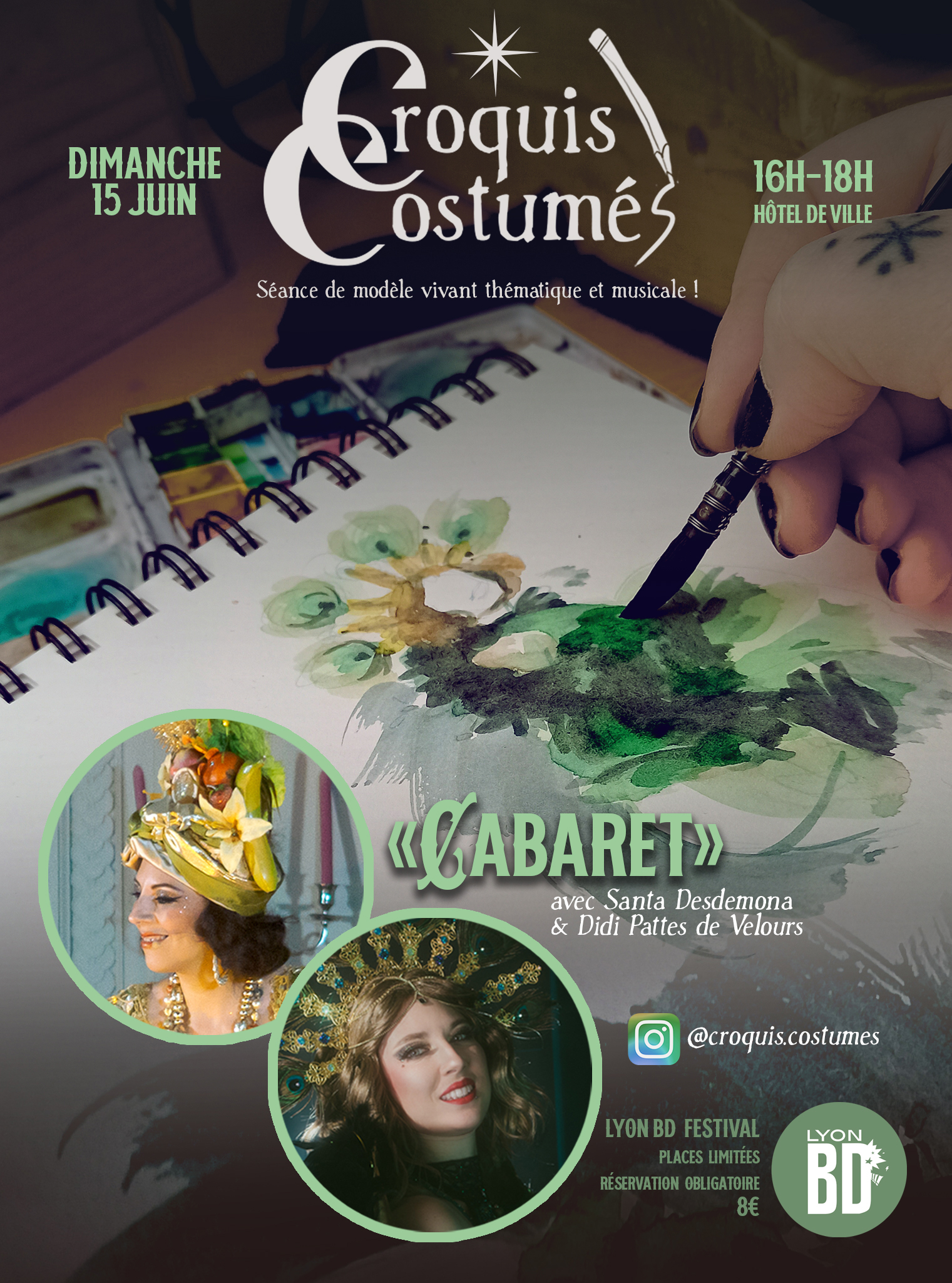 Croquis Costumés est une séance de modèle vivant thématique et musicale, présentée par l’autrice de BD Marie Avril. Ouvert à tous les artistes, amateurs et professionnels, ce spectacle vous offre un cadre immersif dans l’univers du cabaret, grâce aux talents de nos modèles : la danseuse Didi Pattes de Velours, et Santa Desdemona, qui chantera en direct pour accompagner vos croquis ! Laissez-vous embarquer dans nos univers, et à vos crayons ! Suivez-nous sur Instagram @croquis.costumes